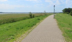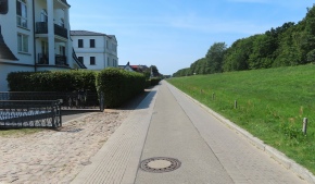 Am nächsten Tag sind wir am und auf dem Deich an der Ostsee entlang gelaufen. Ziel war die Fußgängerzone von Zingst.