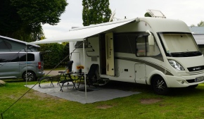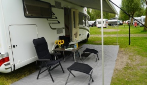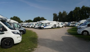 Dort stehen die Wohnmobile wie Sardinen in der Dose. Sie stehen zum Teil so eng, dass manche ihre Wohnraumtüre noch nicht einmal ganz öffnen können.